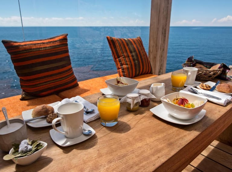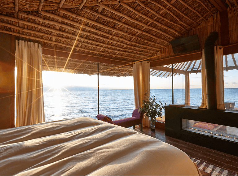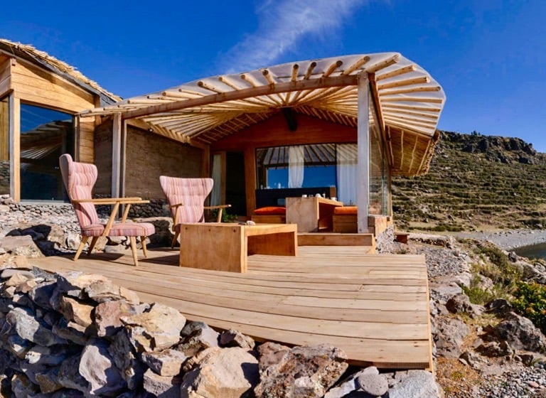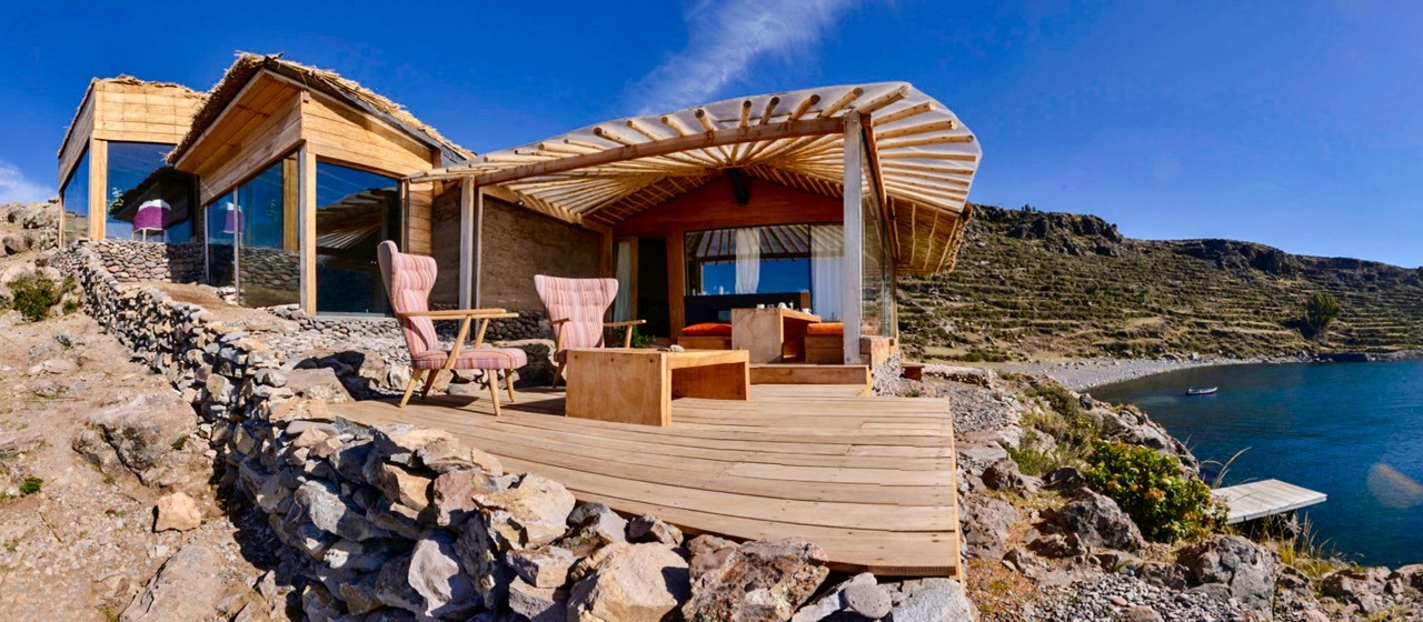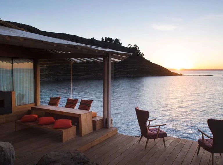 Amantica Lodge is an exclusive and elegant private villa on the tranquil Amantani Island in Lake Titicaca, offering two luxury suites to accommodate up to six people, with a personal chef and a native island guide available at all times. Access is exclusive via a private dock and the lodge boasts stunning views of the lake and surrounding nature. Amantica Lodge presents an elegant aesthetic in tune with the essence of Lake Titicaca's natural landscape and is perfect for romantic getaways or family relaxation and as a starting point for discovering the traditional lifestyles of this beautiful region of Peru.