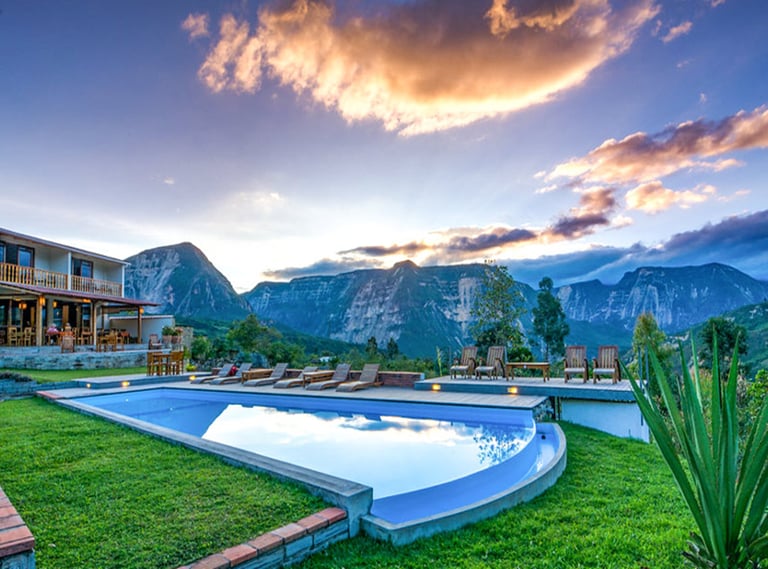 Gocta Natura Reserve is a natural paradise in a privileged location with a panoramic view of the majestic Gocta waterfall, one of the highest in the world. This lodge offers not only the opportunity to admire the beauty of the landscape and its impressive waterfalls, but also the chance to explore the rich history and culture of the Chachapoyas region, including the fortress of Kuelap. With finely equipped cabins, Gocta Natura offers a variety of outdoor activities, and is the perfect place for nature and adventure lovers.