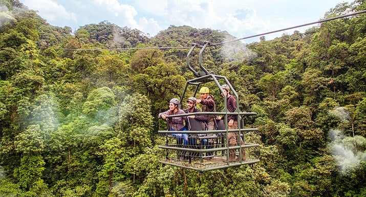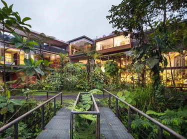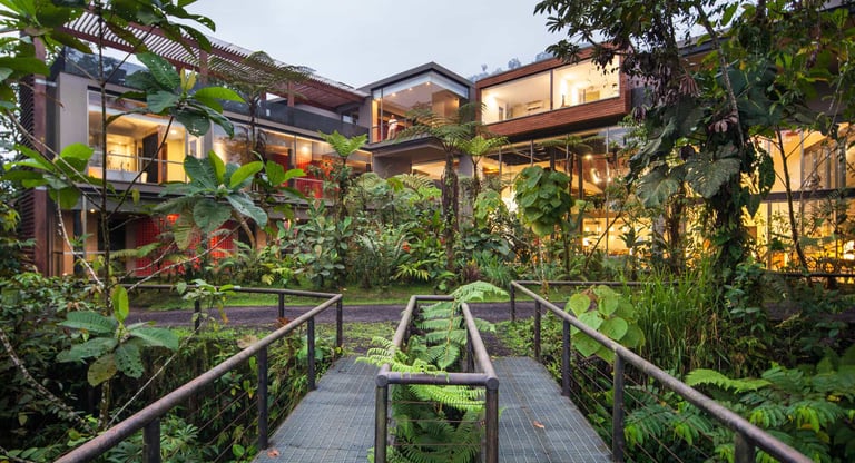 Mashpi Lodge es un ecolodge de lujo situado en la Reserva de la Biosfera del bosque lluvioso del Chocó, en Ecuador, que combina sostenibilidad, naturaleza y confort, y que fue seleccionado como uno de los Unique Lodges of the World de National Geographic. Todas sus habitaciones tienen paredes de cristal para sentirse dentro de la selva en todo momento y el restaurante sirve alta cocina basada en ingredientes locales. En Mashpi se reciclan prácticamente la totalidad de los residuos, y mantiene una filosofía basada en la sostenibilidad. El Lodge ofrece emocionantes excursiones para descubrir la biodiversidad del bosque lluvioso, incluyendo caminatas diurnas y nocturnas por el bosque, y un paseo en bicicleta aérea.