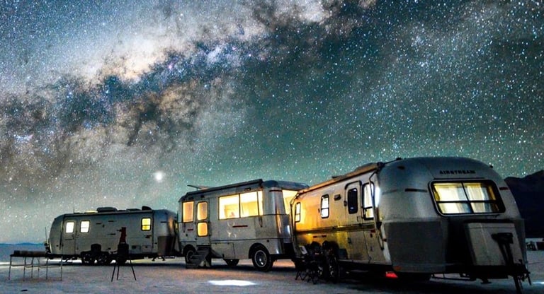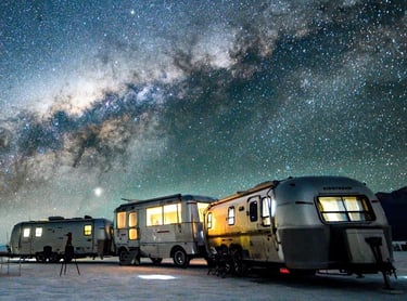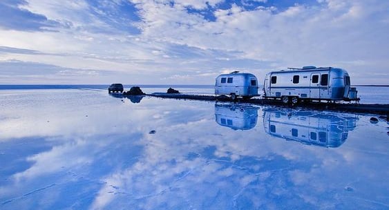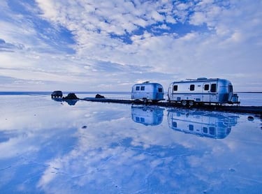 Visitar el Salar de Uyuni, en el sur de Bolivia, y alojarse en un exclusivo camper Airstream, con capacidad de hasta 6 huéspedes, con chef y guía privados, es una experiencia única. Durante esta aventura se conoce la ciudad minera desierta de Pulacayo, el cementerio de locomotoras y, por supuesto, el Salar de Uyuni. Alojarse en un camper Airstream permite explorar el salar al ritmo que se desee y pasar la noche dónde los huéspedes prefieran, excepto durante la temporada lluviosa, cuando se pasa la noche en lugares pre-definidos. Este viaje, en un camper Airstream, es la definición misma de glamping y una experiencia fantástica.