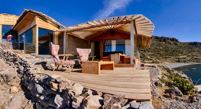 Amantica Lodge es una exclusiva y elegante villa privada en la tranquila Isla Amantaní en el lago Titicaca, que ofrece dos suites de lujo para alojar hasta seis personas, con un chef personal y un guía nativo de la isla disponible en todo momento. El acceso es exclusivo a través de un muelle y el lodge cuenta con impresionantes vistas del lago y la naturaleza circundante. Amantica Lodge presenta una estética elegante y en sintonía con la esencia del paisaje natural del Lago Titicaca y es perfecto para escapadas románticas o relajación familiar, y como punto de partida para descubrir los estilos de vida tradicionales de esta preciosa región de Perú.
