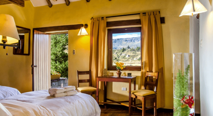 Colca Lodge es un paraíso natural enclavado en las majestuosas montañas de los Andes peruanos. Este lodge eco-sostenible se encuentra en la región de Colca, famosa por su profundo cañón, uno de los más grandes del mundo. Los huéspedes de Colca Lodge pueden disfrutar de impresionantes vistas de los alrededores, así como de una variedad de actividades al aire libre, como caminatas en la montaña, ciclismo de montaña y avistamiento de cóndores. Además, el lodge cuenta con aguas termales naturales impecables para relajarse después de un día lleno de aventuras. Con un ambiente acogedor y un servicio excepcional, Colca Lodge es el lugar perfecto para disfrutar de la belleza natural y la cultura andina.