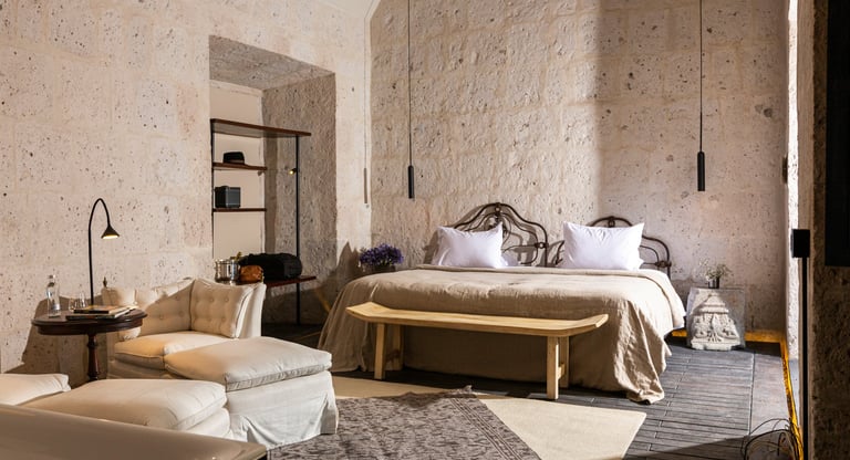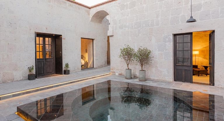 At Cirqa, the luxury boutique hotel in the heart of Arequipa, each room is elegantly designed and equipped with modern amenities to ensure an unforgettable stay. In addition, there is the haute cuisine restaurant, and for relaxation, a spa with a wide range of treatments and a swimming pool. From Cirqa, a wide range of activities begin, including cultural excursions in Arequipa, trekking in the Colca Canyon and Misti Volcano Valley, cooking classes, yoga and meditation.