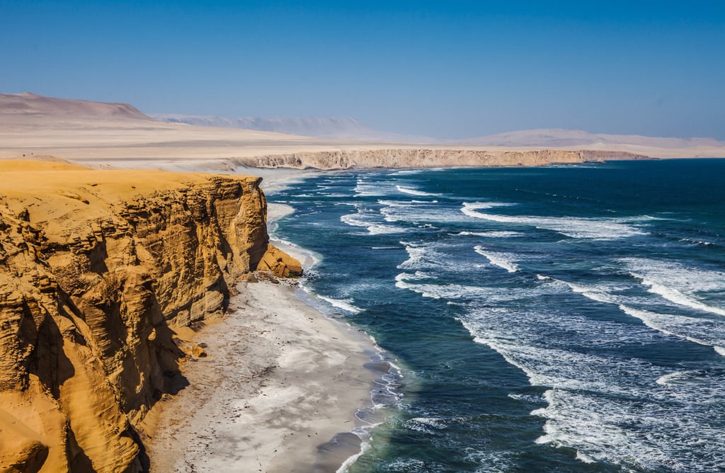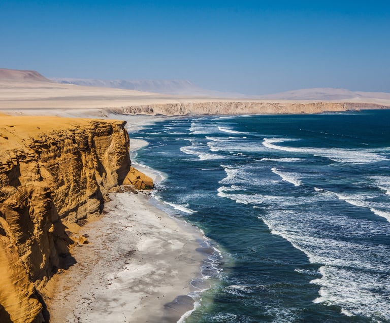 Day 1 · Lima - Paracas: Road transfer south of Lima to Paracas, a bay of calm waters set in the coastal desert. First encounter with the Paracas National Reserve and its landscape of ochre cliffs above the Pacific.