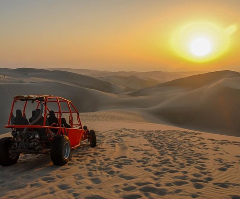 Day 2 · Paracas: Boat excursion to the Ballestas Islands, home to sea lions, Humboldt penguins, and thousands of seabirds that turn the rocks into a spectacle of noise and movement. In the afternoon, dune buggies and sandboarding on the dunes bordering the reserve.