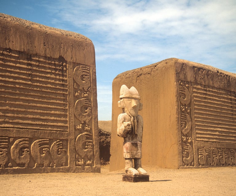 Day 2 · Trujillo - Chiclayo: Visit to Chan Chan, the largest pre-Columbian adobe city in the world and a UNESCO World Heritage Site, and to the Huacas del Sol y la Luna, Moche temples of striking scale. In the afternoon, transfer to Chiclayo.